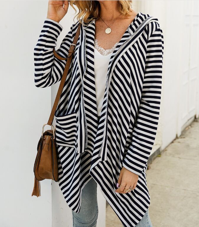 Un look décontracté et stylé : Découvrez notre sweat-shirt à capuche rayé pour femme, l'alliance parfaite entre confort et mode.